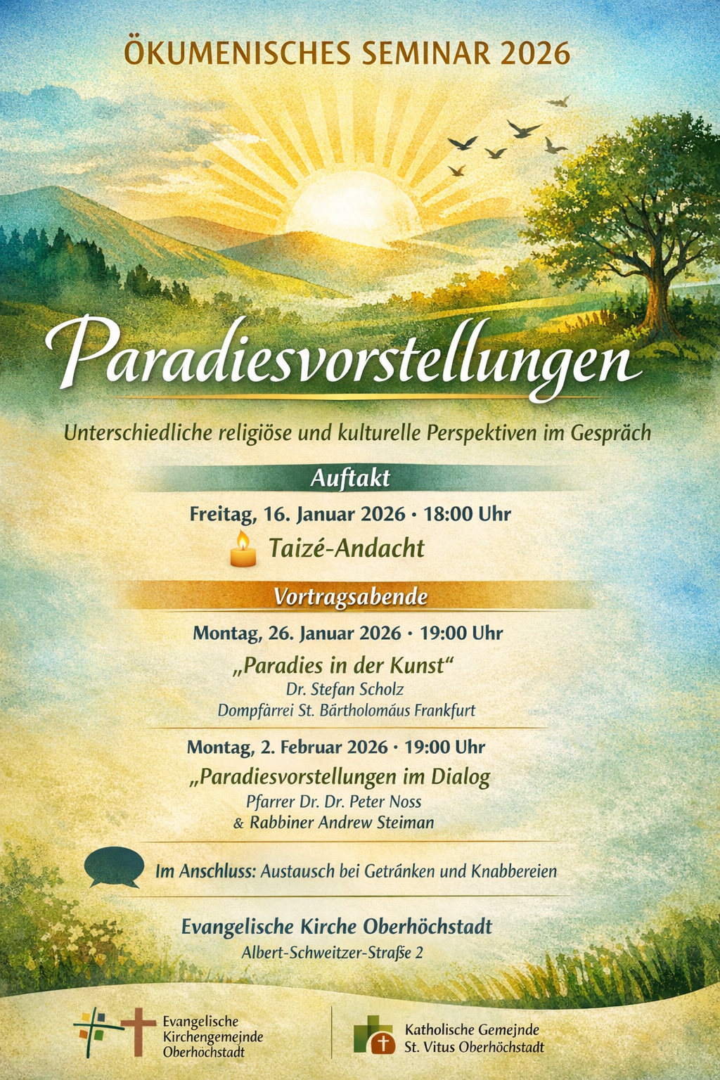 Eröffnet wird die Seminarreihe am Freitag, 16. Januar 2026, um 18 Uhr mit einer Taizé-Andacht in der Evangelischen Kirche Oberhöchstadt.